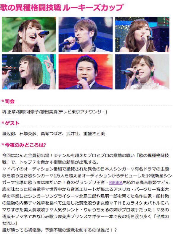 6月14日(水)18:55〜 テレビ東京「THEカラオケバトル 今シーズントップ7初参戦!歌の異種格闘技戦」出演!